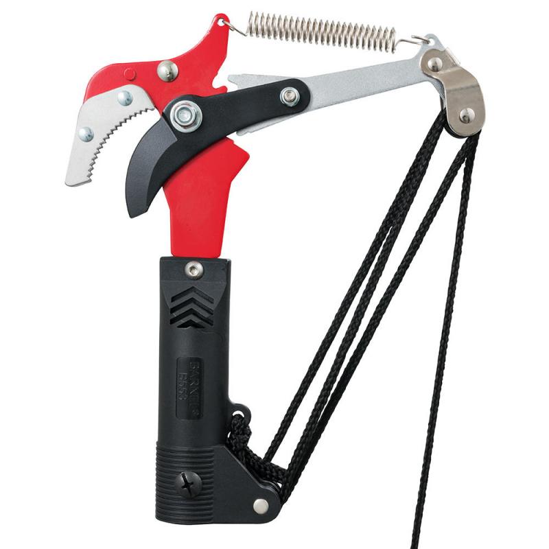 Amboss-Astscherkopf zum Trimmen von Baumkronen und Schneiden von abgestorbenem Holz in großen Höhen. Die gerundete Schneide sorgt für einen ziehenden Schnitt, der kräftige Amboss für eine ausgezeichnete Kraftübertragung. Der lange Hebelarm mit zahnradgetriebenem Mehrfach-Umlenksystem durchtrennt mühelos Äste bis zu einem Durchmesser von 30 mm. Schneidkopf mit aufgesetztem Amboss und antihaftbeschichteter Klinge aus Kohlenstoffstahl. 6,5 m Zugseil aus Polyamid mit Kunststoffgriff. Passend für Teleskopstange Nr. 944555. Barnel Astscheren Die meisten Barnel-Scheren besitzen ein patentiertes Ölersystem, über das Öl mit Hilfe des Öl-Applikators (Nr. 708540) direkt auf die Scherfläche gebracht werden kann. Ersatzteile lieferbar.