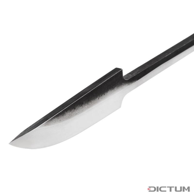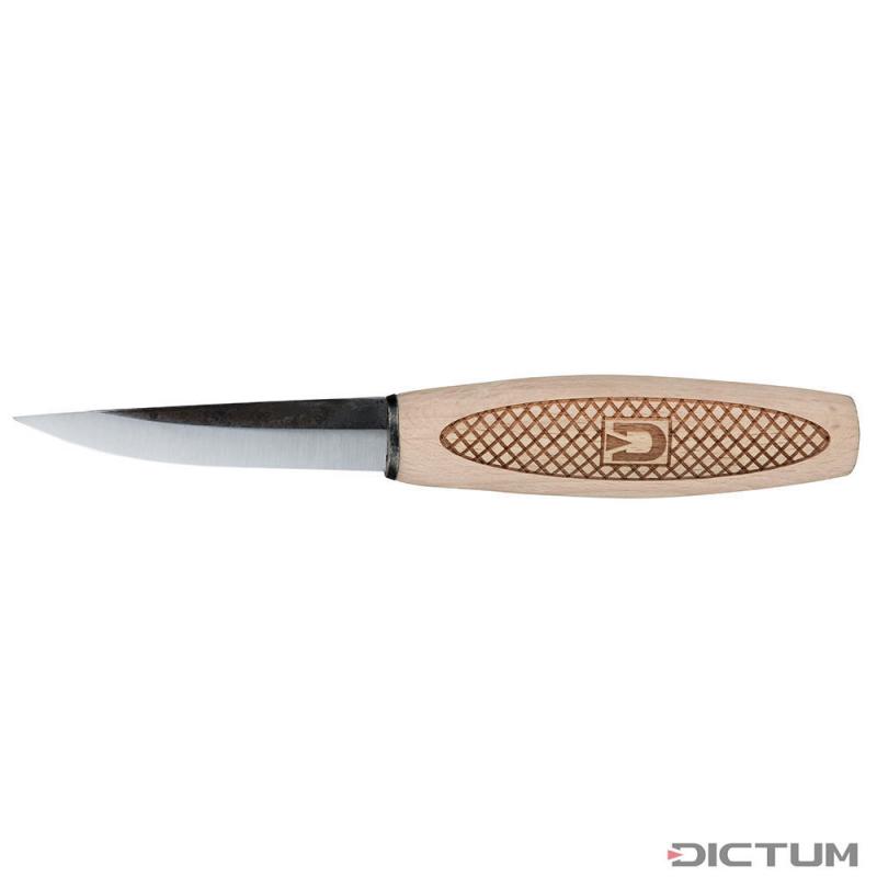 Durch die lange und schlanke Klingenform ideal als Schnitz- und Freizeitmesser zu verwenden. DICTUM Schnitz- und Schälmesser, Form B/L, BS/L, BS/K, G/K, AB und AL DICTUM-Schnitz- und Schälmesser überzeugen durch ihre Schärfe, Schnitthaltigkeit und einer hervorragenden Haptik. Die Klingen aus finnischem Kohlenstoffstahl 80CrV2 enthalten geringe Chrom- und Vanadiumbestandteile (Karbidbilder) und ermöglichen somit eine ausgezeichnete Standzeit bei gleichzeitig feinkörnigem Stahlgefüge. Als Korrosionsschutz wurde die Schmiedehaut an den Klingen erhalten. In Deutschland gefertigte Buchenholzgriffe mit rautenförmig geriffelter Oberfläche verleihen einen perfekten Grip und machen das Messer sicher in der Anwendung. Der ideale Schnittwinkel liegt – je nachdem, ob mit Weich- oder Hartholz gearbeitet wird – zwischen 20 und 27. Je spitzer der Winkel, desto besser schneidet das Messer. Je stumpfer der Winkel, desto länger ist die Standzeit z. B. in Hartholz. Die DICTUM Schnitzmesser liegen selbst nach einem Mikrofasenschliff (durch den Anwender) noch im optimalen Schnittwinkelbereich.